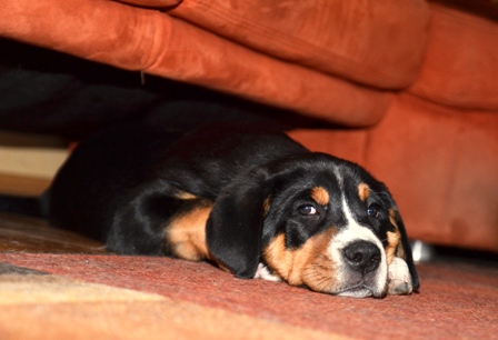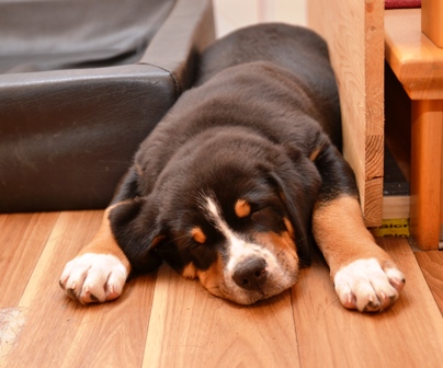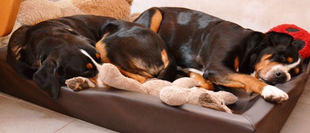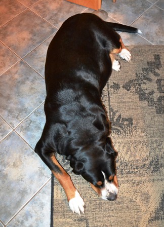 Der gemütliche Nate hat sich immer gerne zwischen Kudde und Absperrung zur Treppe gelegt.