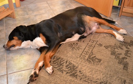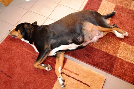 Denn, das Gehen (schnell laufen geht schon länger nicht mehr) fällt ihr sehr schwer. Sie schnauft und brummt ständig vor sich hin. Aber sie liebt es, wenn der Bauch und das Gesäuge von uns lange gekrault werden.