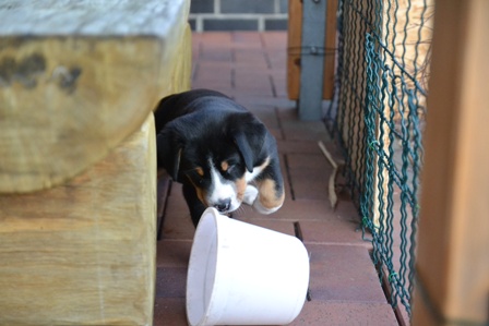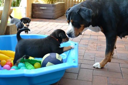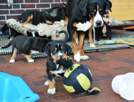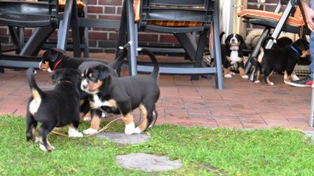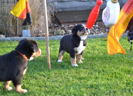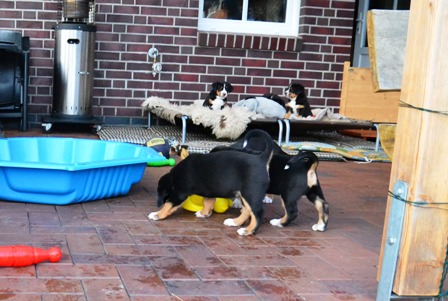 Obwohl wir in den letzten Tage sehr mieses Wetter hatten, mußten die kleinen Ostfriesenkinder immer wieder raus. Es wurde Spielzeug auf der überdachten Terasse getestet und mit Mama Bantje und Halbschwester Alke gespielt und gekuschelt.