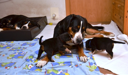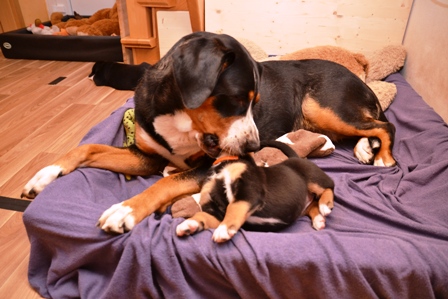 Als Bantje wieder in die Wurfkiste wollte, meinte Alke, jetzt sind das meine Kinder! Wir mußten ihr dann mal kurz erklären, daß das so nicht stimmt!