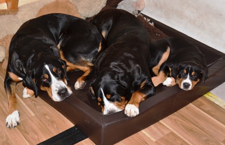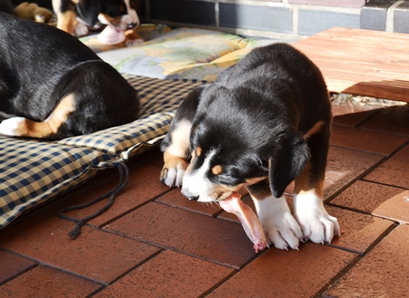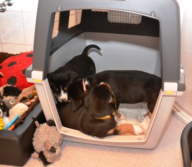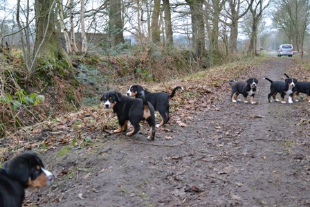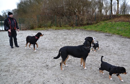 Es ist schon erstaunlich, wie schnell sich Welpen, hier gerade mal 10 Wochen alt, von den Alten Dinge abschauen. Sie hat sich, ohne ein Wort von uns, Bantje und Alke angepasst.