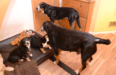 künftig leben wird, schon von der GSS-Hündin Bente und von zwei Jack Russel Hündinnen empfangen.