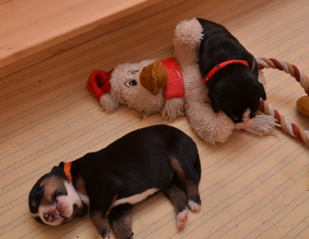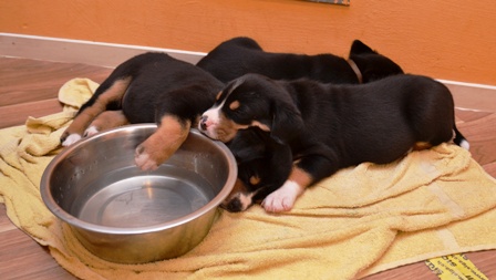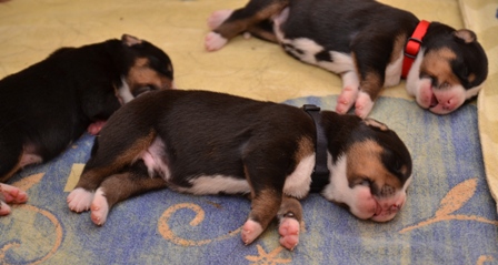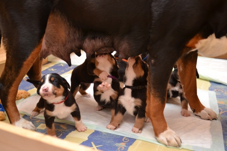 Sie wachsen und gedeihen prächtig und merken schon, wenn Mama Bantje oder wir die Wurfkiste betreten. Auch versuchen sie vermehrt, auf ihren Beinchen zu stehen. Noch fallen sie immer ganz schnell wieder um. Aber wie heißt es so schön: Übung macht den Meister.