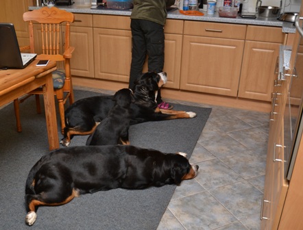 Frauchen bereitet es zu und alle warten ganz lieb: