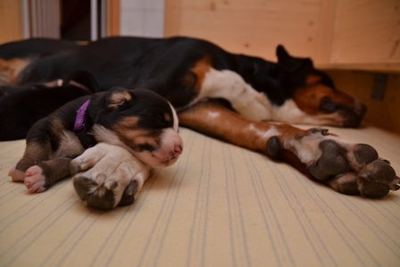 Die Kleinen schlafen natürlich die meiste Zeit, und sind sie mal wach, wird kräftig genuckelt. So haben alle schon etwas zugenommen.