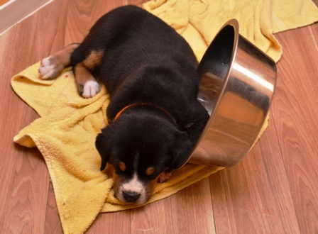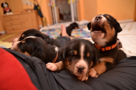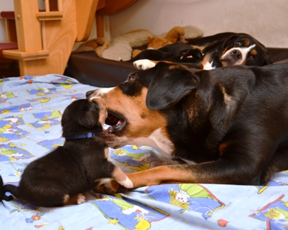 Gestern abend, als Bantje mal kurz zum Geschäft erledigen draußen war, hatte Alke sich in die Wurfkiste geschlichen, um ihre neuen Halbgeschwister zu begutachten.