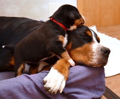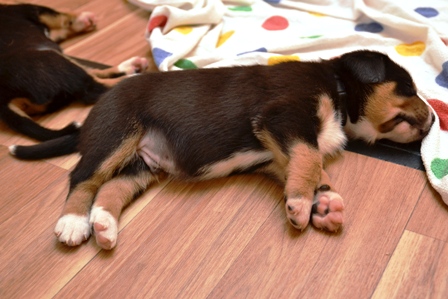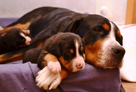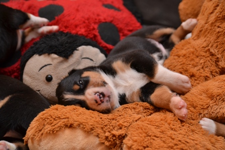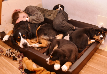 Aber vorher wurde mit den drei verbliebenen Welpen und Alke noch schön gekuschelt: