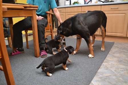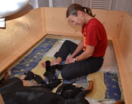 Die Wurfabnahme... alle waren ganz lieb zu der Zuchtwartin!