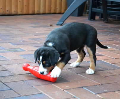 Alke bringt ein Spielzeug: